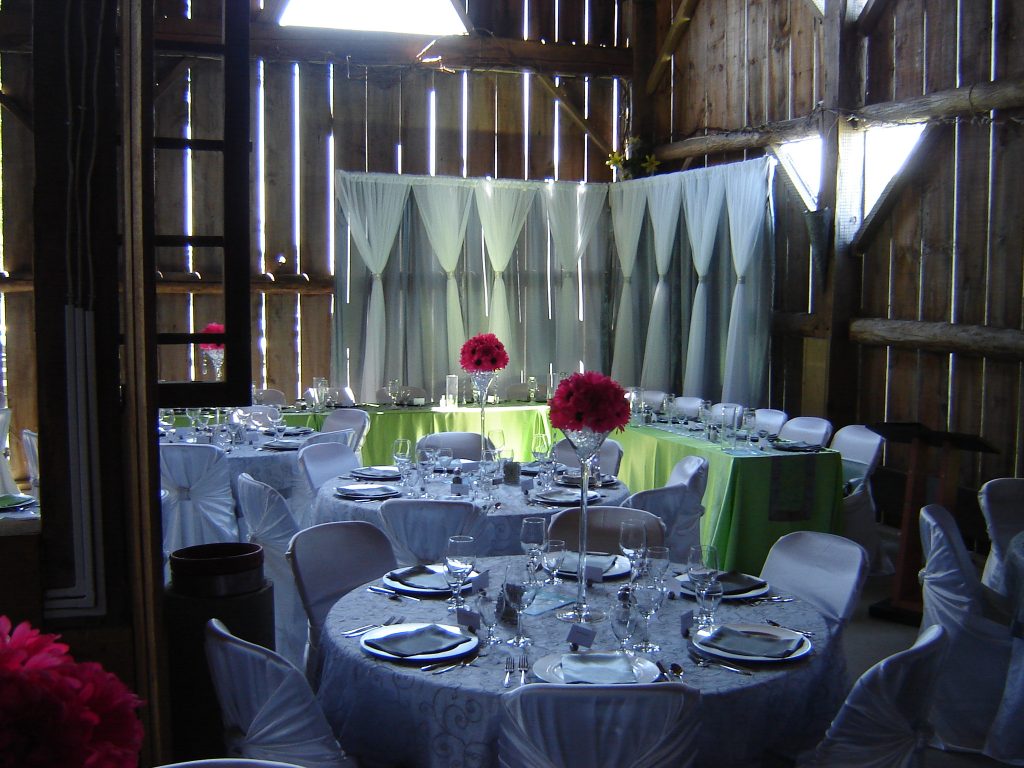 Beverage & Bar Stations: A variety of acrylic and glass dispensers for “serving with pleasure,” alongside our premium 6′ Early American Pine Bar—a custom Chevron-designed centerpiece that includes integrated shelving and local delivery.